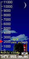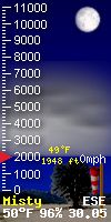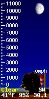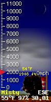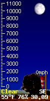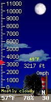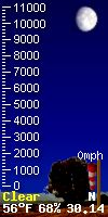 You can always see where the sun and moon are located in the world in 'degrees' by referring to "Sun El" & "Moon EL" (EL refers to elevation) data as it relates to our local position in the world. The number is positive when the sun or moon is up in our local sky, and negative when they are tracking below the horizon. In this way you can always see the location of the sun and moon in the world as it relates to our local Placerville, CA. location. The Zenith parameter refers to the time of day the sun is at its highest postition in the sky. 'Sun AZ' refers to the sun's azimuth. 'Illimination %' is the current illumination of the moon. The current phase of the moon is shown in the moon graphic.