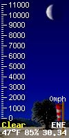 Lo 45 °F | Clear, with a low around 45. Light east wind. |